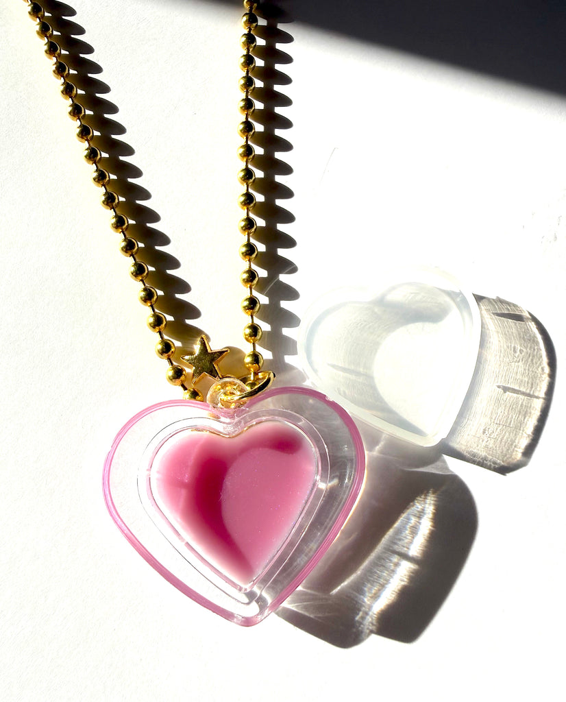 Discover the charm of our Heart Lip Gloss Necklace—a delightful accessory that brings warmth to your winter beauty routine.  A buttery finish kissed with a soft pink undertone, perfect for adding a touch of glamour to any Holiday outfit. Length